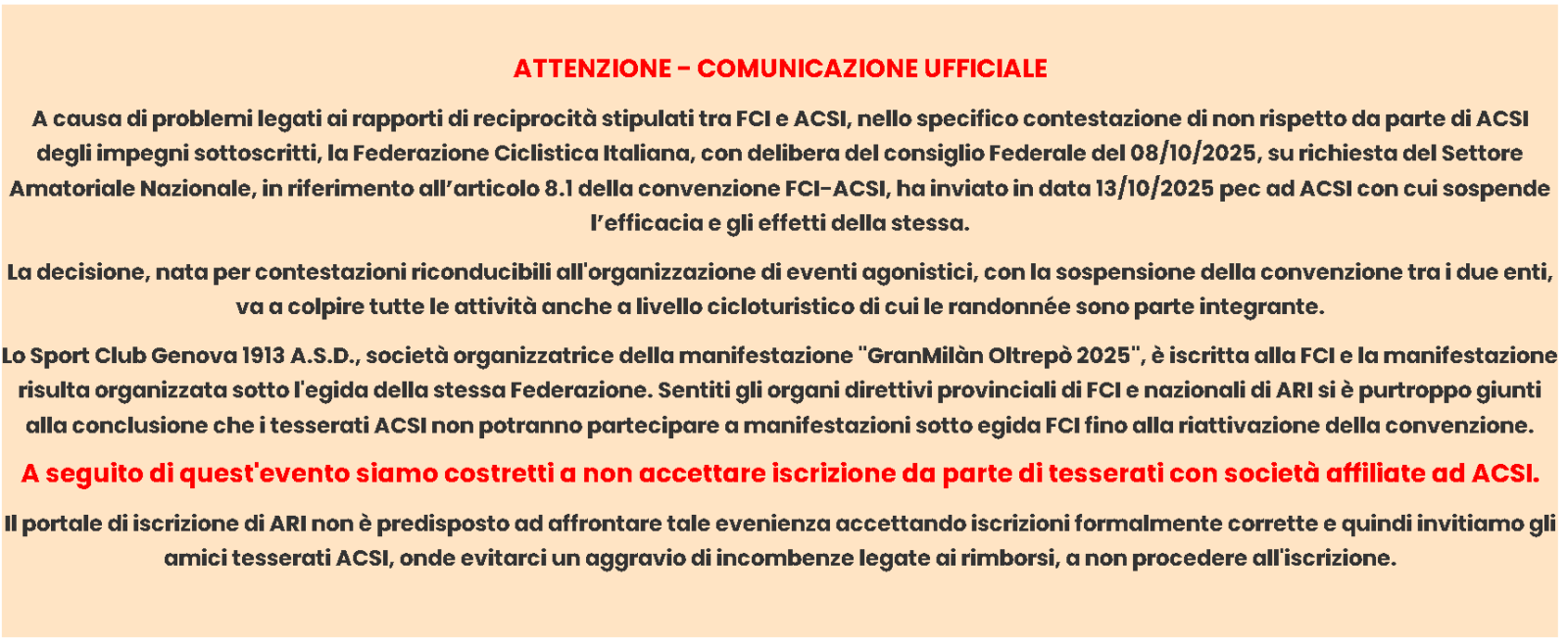 ISCRIZIONI La quota di iscrizione è di 15,00 € per tutti i percorsi, 13,50 € per i possessori di ARICard - Fino al 10/10/2025 La quota di iscrizione è di 20,00 € per tutti i percorsi, 18,00 € per i possessori di ARICard - Dal 11/10/2025 al 17/10/2025 Iscrizioni anche al mattino prima della partenza a 25,00 € ( Solo contanti )