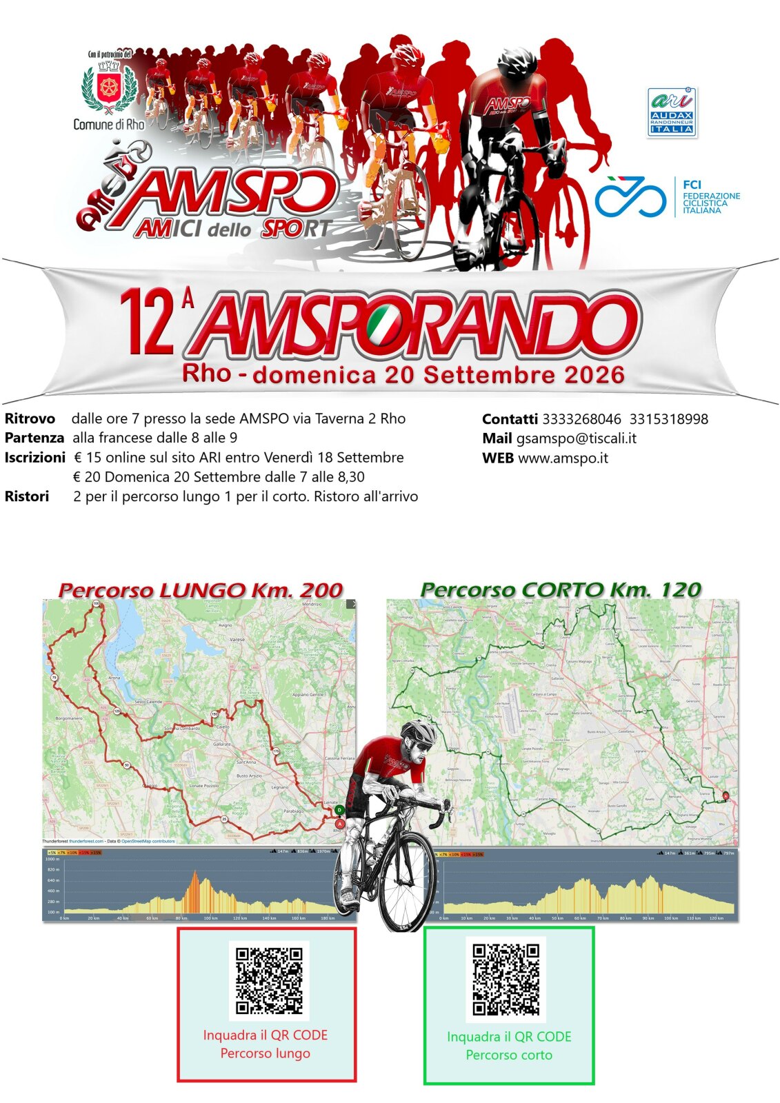 ARI NON E' RESPONSABILE DELLE INFORMAZIONI PUBBLICATE SU QUESTA PAGINA, IL CUI CONTENUTO E' AUTONOMAMENTE GESTITO DALL'ORGANIZZATORE DELL'EVENTO. AMSPORANDODistanza 130 km Dislivello 900 metri Tempo massimo 900 ore Dove Rho (MI) Contatti 3333268046 3315318998 Partenza 08:00 - 09:00 Omologazione cp/ARI 130 km Servizi Iscrizioni dal 03/08/26 al 18/09/26 Quota di iscrizione Online: 13.00 € PREISCRIZIONI attive fino al 14/09/2026 al fine di permettere le PREISCRIZIONI pur avendo la VISITA MEDICA IN SCADENZA NON si ACCETTANO ciclisti non tesserati