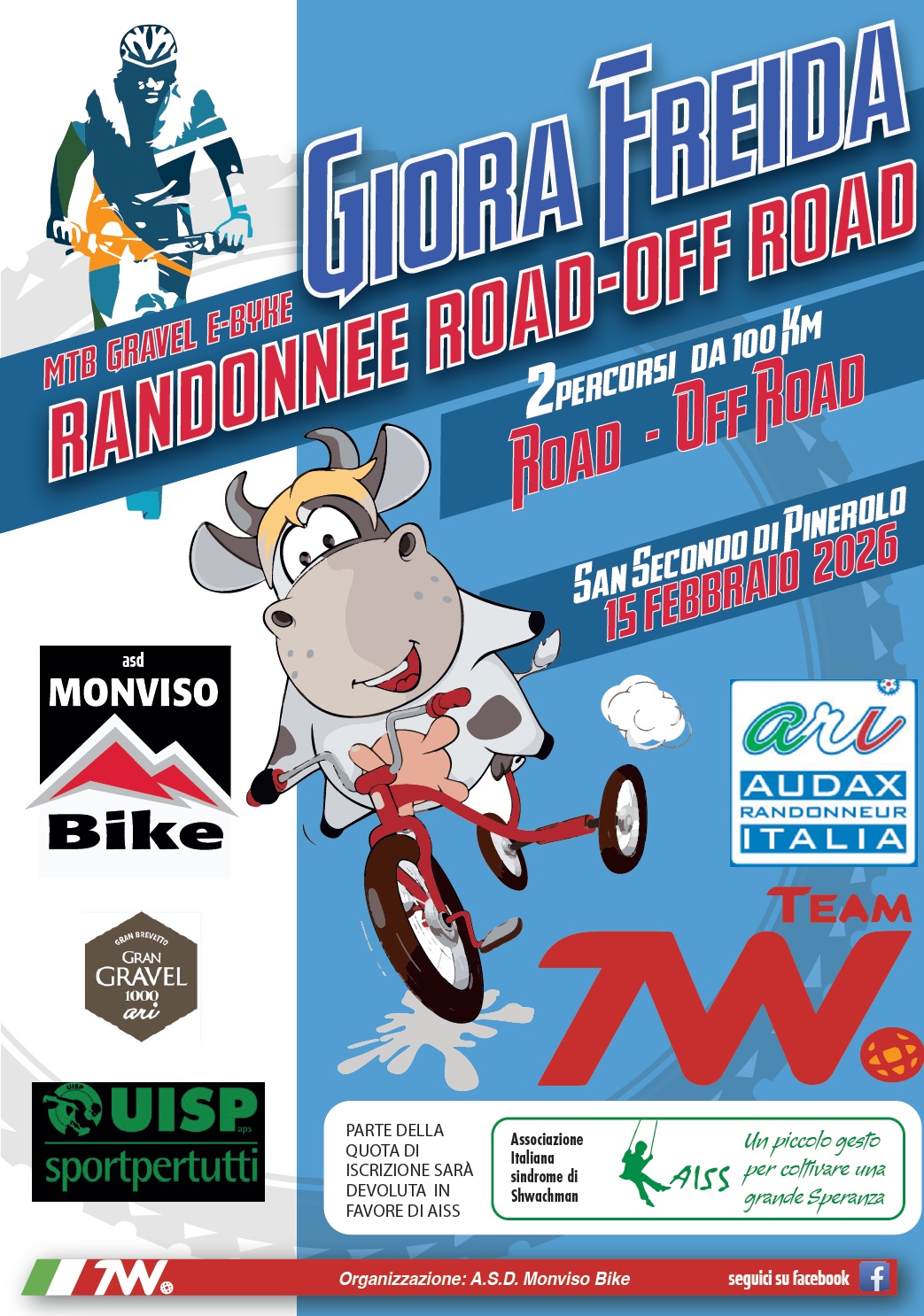 ARI NON E' RESPONSABILE DELLE INFORMAZIONI PUBBLICATE SU QUESTA PAGINA, IL CUI CONTENUTO E' AUTONOMAMENTE GESTITO DALL'ORGANIZZATORE DELL'EVENTO. LA GIORA FREIDA ON THE ROADDistanza 100 km Dislivello 500 metri Tempo massimo 7 ore Dove San Secondo Di Pinerolo (TO) Contatti 3456003559 Partenza 08:00 - 09:00 Omologazione cp/ARI 100 km Servizi Iscrizioni dal 09/01/26 al 13/02/26 Quota di iscrizione Online: 16.00 € Si ACCETTANO anche ciclisti non tesserati