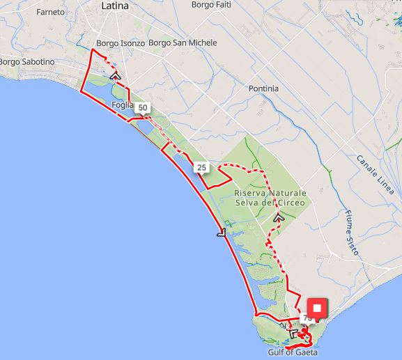 DESCRIZIONE DEL PERCORSO Partire da San Felice Circeo significa entrare immediatamente nel regno della leggenda. Qui, dove il promontorio si tuffa nel Tirreno e le Isole Pontine scintillano all’orizzonte, riecheggiano ancora i racconti dell’Odissea: è in queste grotte e su queste rupi che la maga Circe accolse Ulisse, ammaliandolo con magia e bellezza. Oggi quegli stessi luoghi diventano il prologo di una nuova avventura: la Odissea Rando Gravel. Il percorso si snoda tra sterrati panoramici, pinete ombrose e lunghi tratti immersi nella natura del Parco Nazionale del Circeo, uno degli scrigni di biodiversità più preziosi d’Italia. Dopo aver lasciato il borgo storico e il suo promontorio, i partecipanti si immergeranno nel silenzio del Bosco di Sabaudia, dove i sentieri sabbiosi si intrecciano tra sughere, lecci e daini che talvolta fanno capolino tra gli alberi. Da qui si pedala verso l’immenso paesaggio agricolo dell’Agro Pontino, seguendo i canali della bonifica: linee d’acqua perfette e regolari che raccontano un altro capitolo di storia, quello del grande intervento idraulico che trasformò le paludi in terre fertili. I canali guidano i ciclisti fino alle porte di Latina, dove il percorso piega nuovamente verso il mare. Il rientro avviene per il lungomare di Sabaudia, una passerella naturale sospesa tra il blu del Tirreno e gli specchi dei laghi costieri della Bonifica dell'Agro Pontino. Nell'ordine il lago di Fogliano, Monaci, Caprolace ed infine il lago di Paola. Proprio sulle rive del lago di Paola si affaccia la maestosa villa di Domiziano, fastoso complesso residenziale romano che conserva ancora le strutture portuali e i resti delle sale termali, testimoni della vita lussuosa dell’epoca imperiale. A collegare il lago al mare scorre il canale romano, una straordinaria opera ingegneristica che ancora oggi racconta il rapporto millenario tra uomo e territorio. Da Torre Paola si ritorno al Borgo antico di San Felice per una discesa fino al Faro e da qui inizia uno dei tratti più belli: la Via del Sole (sterrata) riporta al borgo aprendosi come una terrazza sul mare lunga circa 3 km dove sarà possibnile godere la vosta del porto del Circeo e le isole da Ischia a Palmarola! Gli ultimi chilometri sono un ritorno all’epica: la salita al Picco del Circeo, luogo simbolo della maga Circe, domina dall’alto l’intero itinerario. È un’ascesa breve ma intensa, che regala una vista mozzafiato sulle Isole Pontine e sulle terre che Ulisse attraversò nel suo viaggio. Da alcuni è chiamato anche il Piccolo Stelvio perché in circa 3 km le pendenze non scendono mai sotto il 10%. Si scenderà dall’alto dei circa 450 mt di altitudine del picco lungo una discesa tecnica che si infila nel bosco per un emozionante single track nel bosco. Un finale perfetto per chi ama la fatica, la natura e il fascino dei miti.