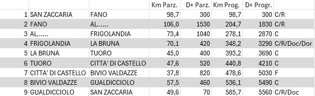 PROGRAMMA: VENERDI' 8 MAGGIO - DALLE 18:30 CONSEGNA LIBRETTI DI VIAGGIO - PIZZATA DI GRUPPO - BRIEFING DALLE 21:30 APERTURA DORMITORIO GRATUITO (su prenotazione) SABATO 10 MAGGIO - RITROVO / COLAZIONE PRESSO LA PARTENZA DALLE 05:30 PARTENZA DALLE 06:00 - ALLE 07:00 LUNGO IL PERCORSO VARI RISTORI DORMITORIO CON DOCCE A META' PERCORSO (km 345) cena docce con teli phon lettini con cuscino e coperte possibilità di ricarica dei dispositivi elettronici PASTA PARTY FINALE ACCOGLIENZA E GADGET PER TUTTI I PARTECIPANTI