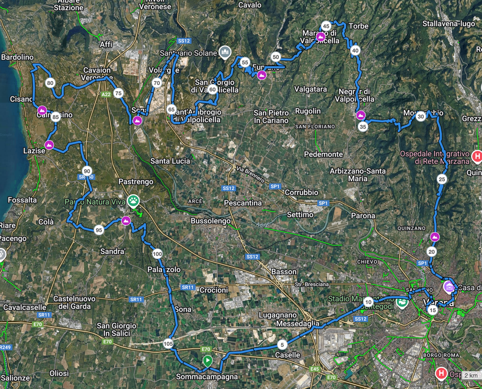 Lasciata Sommacampagna ci si dirige verso est in direzione Verona. Attraversato il magnifico Ponte Scaligero (Castelvecchio) si entra nel centro storico con l’Arena, icona della città e sede quest’anno della cerimonia di chiusura delle olimpiadi invernali Milano-Cortina. Proseguendo lungo l’Adige si ammirano i più importanti punti di interesse della città: Ponte Pietra, il più antico ponte di Verona di epoca romana, il Teatro Romano, i campanili delle numerose chiese. Lasciata la città si affrontano le tre salite più importanti della Valpolicella, rinomata regione collinare ricca di ulivi, ciliegi e soprattutto viti, famosa per la produzione di prestigiosi vini rossi. Dopo l’ultima salita, scendendo a San Giorgio “ingannapoltron” (citato come uno tra i “Borghi più belli d’Italia”), merita una sosta nella piazza per ammirare il panorama mozzafiato sul Lago di Garda. Terminata la discesa verso la Terra dei Forti, a Volargne si trovano il punto di ristoro, il controllo e la divisione dei 100 km e 200 km. Prendendo la direzione Castion Veronese si scende verso il lago e, poco prima di Bardolino, si gira a sinistra percorrerendo il crinale panoramico fino a Lazise. Lasciato il lago, l’ultima parte del percorso affronta le colline moreniche che riportano a Sommacampagna. All’arrivo avrai la possibilità di doccia e pasta party che sarà offerto ai partecipanti (quota a parte per gli accompagnatori). Siamo pronti ad accogliervi numerosi anche quest’anno, certi che apprezzerete le novità del nuovo percorso! MODALITÀ ISCRIZIONI ON-LINE del ciclistaSocio ARIIl ciclista socio ARI, dopo essersi "loggato" viene riconosciuto dal server ARI che verifica che la data della visita medica depositata in DataHealth sia valida nella data del Brevetto (se fosse scaduta gli chiede di aggiornarla) e gli permette di iscriversi immediatamente, senza dover inserire i propri dati, procedendo al pagamento della quota di iscrizione scontata. Non socio ARIARI e gli Organizzatori associati utilizzano il servizio DataHealth per la verifica e l’archiviazione dei certificati medici. Il sistema, prima di aprire la scheda iscrizioni chiede di inserire il proprio CODICE FISCALE per verificare su DataHealth se sei registrato e hai la visita medica valida. Si presentano perciò due casi: - IL SISTEMA TROVA VISITA MEDICA VALIDA su DH > Sei certificato perché a suo tempo hai già fatto la procedura di inserimento in DataHealth per un precedente Brevetto ARI o per una GF che lo aveva richiesto. Quindi PUOI PROCEDERE > si apre la scheda iscrizioni da compilare. - IL SISTEMA NON TROVA LA VISITA MEDICA VALIDA > NON sei certificato in DataHealth.